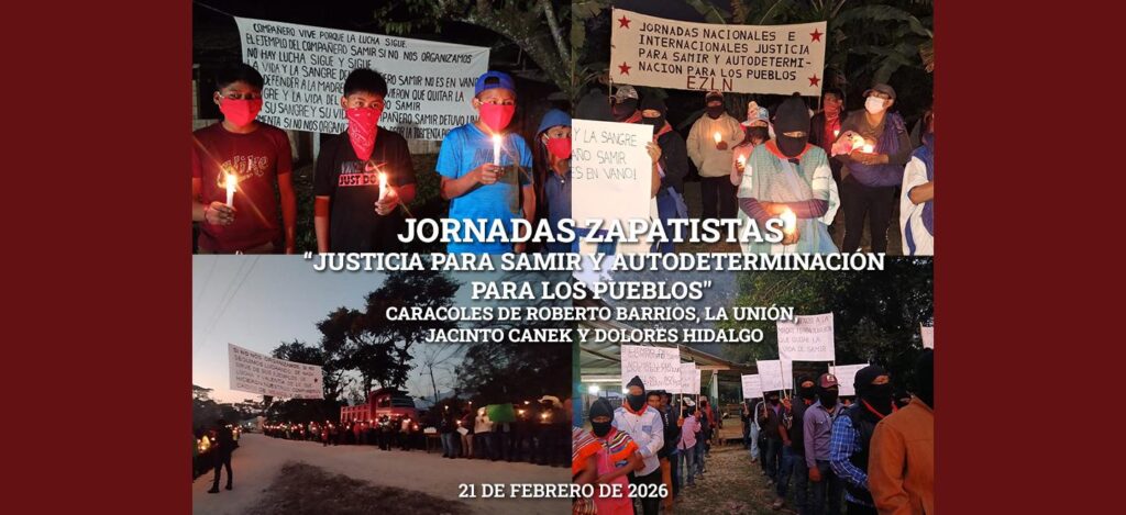 JORNADAS ZAPATISTAS «Justicia para Samir y autodeterminación para los pueblos» 21 DE FEBRERO DE 2026, Caracoles de Roberto Barrios, La Unión, Jacinto Canek y Dolores Hidalgo