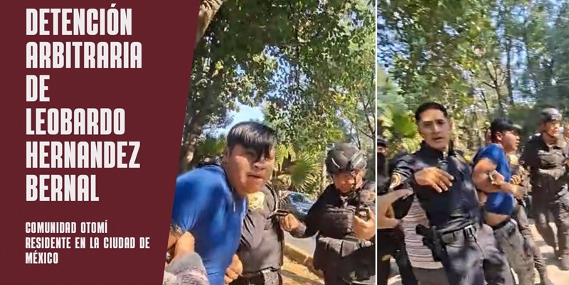 Esta mañana, el Congreso Nacional Indígena denunció la detención arbitraria de Leobardo Hernández Bernal, miembro de la comunidad Otomí residente en la Ciudad de México, por parte de policías y granaderos de esa ciudad.