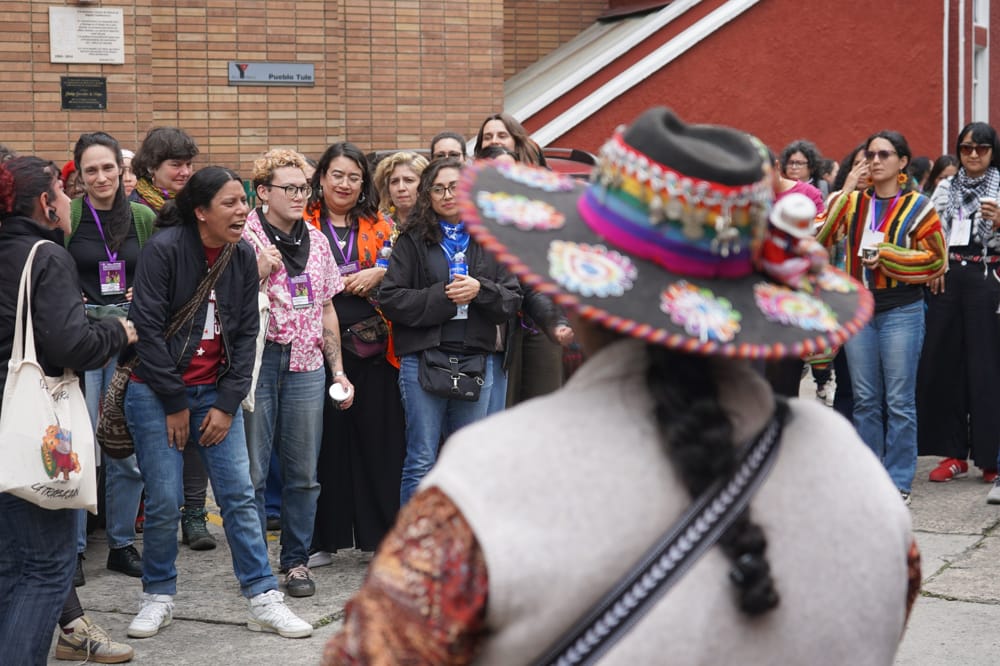 El segundo panel condensó esa fuerza. Celebró la juntanza como acto político y como gesto radical frente a la fragmentación. Las voces fueron múltiples: mujeres de barrio, mujeres indígenas, defensoras de derechos, mujeres amazónicas protectoras del bosque, sembradoras de agua, madres buscadoras de personas desaparecidas, madres de víctimas de feminicidio, trabajadoras del campo y la ciudad. No solo hablaron quienes estaban en la mesa; el público también tomó la palabra, borrando las fronteras entre quien expone y quien escucha. Las intervenciones se entrelazaron como si siempre hubieran sabido encontrarse, hilando experiencias distintas en una trama común.