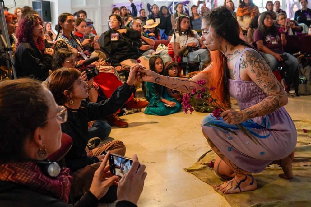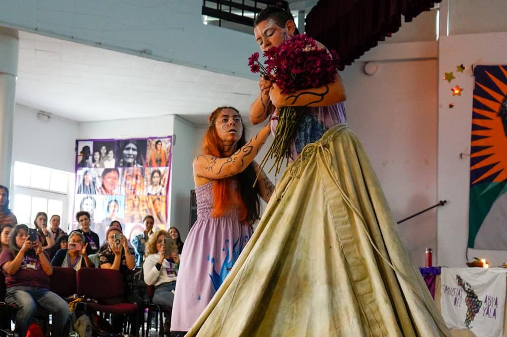 Se habló del cuerpo extensivo, del ser cuerpo-tierra, de cómo el territorio no es únicamente suelo sino piel, memoria y herida. Nombrar los ataques al cuerpo y al territorio fue un acto de memoria, pero también de afirmación. Cada testimonio traía dolores que no pidieron permiso para ser dichos, pero también pequeñas alegrías y esperanzas tejidas en la adversidad. Hubo pedagogas de la esperanza, mujeres que caminan la teología de la liberación, defensoras del derecho a decidir y de la autonomía de los cuerpos. En cada relato se afirmaba una certeza: cuando una mujer defiende el agua, defiende su propio cuerpo; cuando busca a su hija desaparecida, defiende el derecho a existir; cuando siembra, enseña o acompaña, sostiene el mundo.