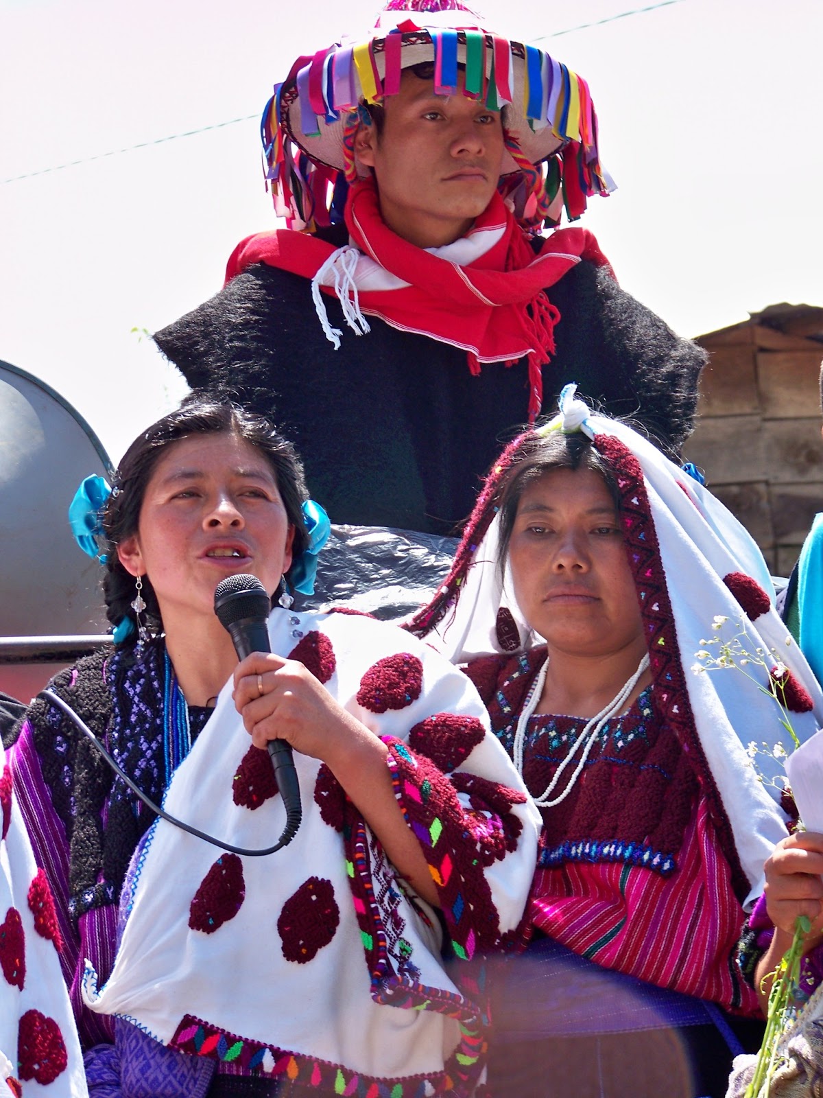 Hoy, estamos reunidas las mujeres Abejas de Acteal en este 8 de marzo para recordar que fueron masacradas nuestras compañeras de Acteal, en el año 1997, la mayoría eran mujeres, niñas, niños; en aquel año algunas de nuestras compañeras luego de muertas fueron acuchilladas y sacarles sus bebés. Nosotras somos sobrevivientes, nos llevaron nuestra alegría, la masacre nos trajo mucha tristeza, enfermedades. Este Dia es igual para recordar que no hubo respeto hacia las mujeres que fueron asesinadas en Estados Unidos exigiendo sus derechos y un salario justo por su trabajo