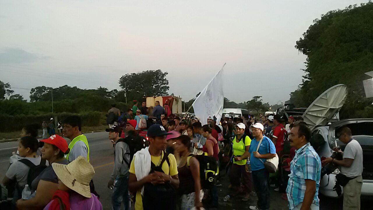 En la plaza de la ciudad de Arriaga, Chiapas, miles de migrantes se acomodaban donde podían en un estado de visible deterioro. Desde que los hemos acompañado, hace sólo dos días, hasta ahora, el cambio es muy notorio. El calor es brutal, el cansancio es intenso. Un bebé yace en su carriola empapado en sudor, mientras su mamá intenta refrescarlo echándole aire con un pedazo de cartón. Gente acostada o sentada por doquier, miradas nubladas. Una mujer pide algunas monedas para poder comprar paracetamol para su hijo de un año, que llora con fiebre. Ver a los niños aquí es desgarrador. Estamos en la última parada en el estado de Chiapas, pero éste es sólo el comienzo de una larguísima travesía por el país. Y ya han sucedido varias tragedias. Dos muertes confirmadas, aunque se rumoran tres más. Un bebé muerto con un impacto de bomba de gas lacrimógeno de la Policía Federal en el puente en la frontera. Un joven de alrededor de 26 años que cayó de un trailer cerca de Huixtla y cuyas últimas palabras, según un testigo, fueron “No me quiero ir”. Pero varios migrantes cuentan también de dos niños que fallecieron ahogados durante la represión en el puente en la frontera. Cuando mucha gente se tiró al río para evitar los gases, las vallas y los antimotines mexicanos, una madre con dos hijos pequeños tuvo que lanzarlos primero antes de aventarse ella misma. Y ya no los volvió a ver. Y ayer se rumoró, sin que se haya podido confirmar, la muerte de una mujer que cayó de un trailer a la salida de Pijijiapan a las tres de la mañana. Al mismo tiempo, el miedo. Una joven de Arriaga, quien abrió las puertas a algunas familias migrantes para que pudieran descansar en su casa, escuchó decir a las mamás que en varias ocasiones han recibido ofertas de comprarles a sus hijos por parte de lo que asumen ser criminales.