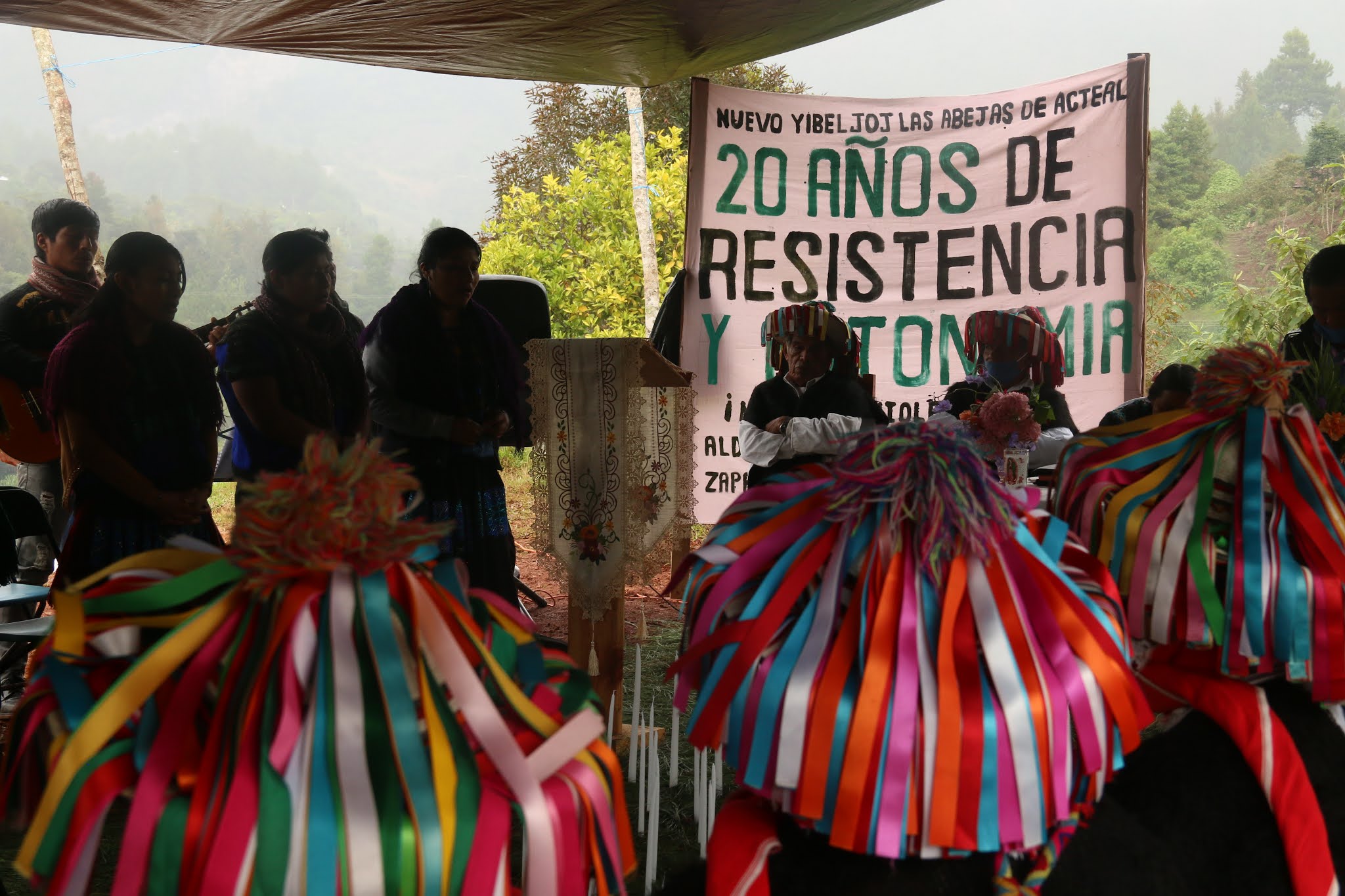 Hermanas y hermanos, por el momento hasta aquí llega el hilo de nuestra palabra, los 20 años de nuestra lucha y resistencia no caben todo en este comunicado, pero les pedimos lleven en su corazón nuestra palabra humilde, como dijimos en la convocatoria, no es posible invitar a mucha gente con su presencia física por las condiciones sanitarias del Covid-19, pero estamos seguros que en donde quiera que caminan y existen, nos escucharon y difundan nuestra palabra, cuéntenle a sus compañeros y compañeras, a sus familias a sus conocidos, que aquí seguimos, que quienes nos acompañaron en nuestro éxodo un día 17 de octubre en el año 2000, desde X’oyep hasta esta tierra, díganle que no nos hemos vendido, que nuestra dignidad no tiene precio, que no traicionaremos la sangre derramada en Acteal, y de las y los que han dado su vida por nosotras y nosotros.