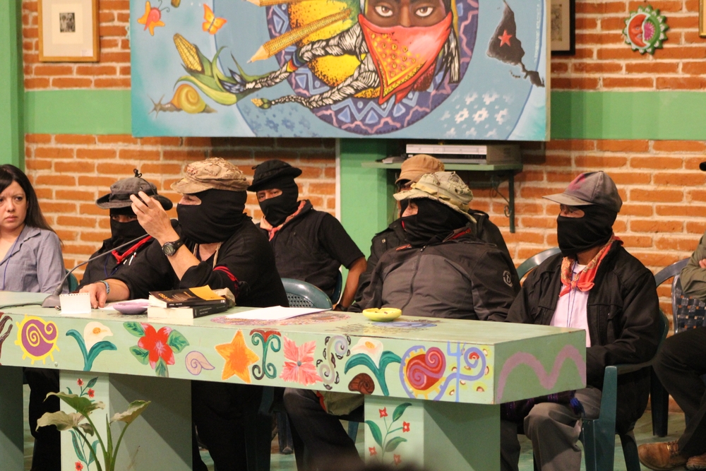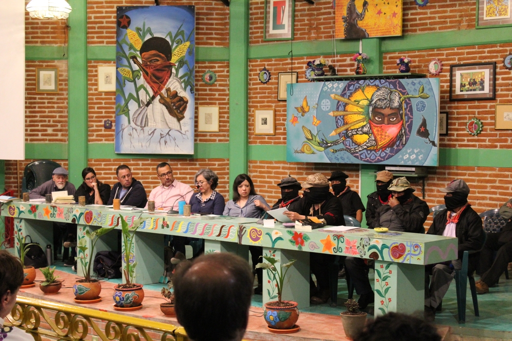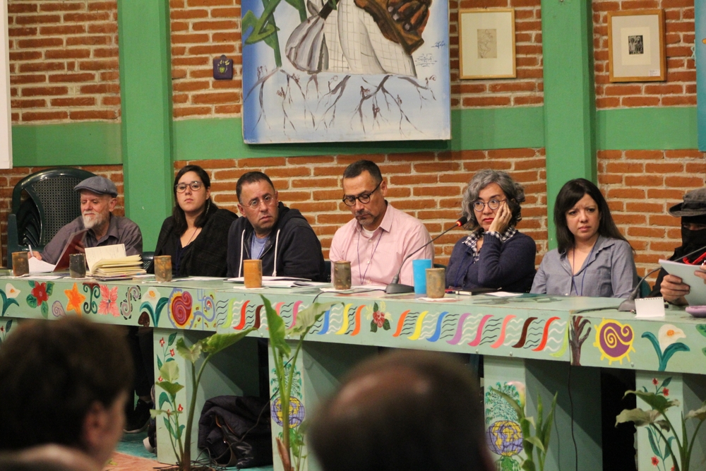Si alguien aún creía que la tormenta era apenas una metáfora, una muy filosa y oscura pero soportable, esta tarde los compas Zapatistas la volvieron explícita al traer al Conversatorio la valoración de Carlos Taibo en su libro “Colapso. Capitalismo terminal, transición ecosocial, ecofascismo”. Si ya estamos en camino a un colapso terminal de la humanidad –es decir que no tenemos ya la posibilidad de frenar o modificar la suma apocalíptica de todas nuestras crisis– lo que sigue es organizarse para formar parte del probablemente estrecho margen de sobrevivientes de la segunda mitad de este siglo. A diferencia de los productores del Colapso, que saben de él hace mucho y han decidido acelerar la reducción del margen de sobrevivientes, Cristina Rivera Garza, Jorge Alonso, Irene Tello, Mónica Meltis y Carlos Mendoza compartieron esta tarde sus experiencias para intentar esquivar el abismo: articulando narrativas y procesos de trabajo que más bien reaccionan ante el horror fortaleciendo el de por sí humilde, espiritual y poderoso impulso de proteger a lxs compañerxs de viaje. “No nos estamos preparando para un período electoral sino para el apocalipsis. No es lo mismo organizarse para una elección, para tener un voto, que para hacer frente a un mundo como el que ustedes han narrado. A nosotros lo que nos interesa es que la gente viva. Si es antizapatista no hay pedo pero que viva”, agregaron los zapatistas en una de sus comparticiones más de corazón, directas y sinceras de los últimos encuentros.