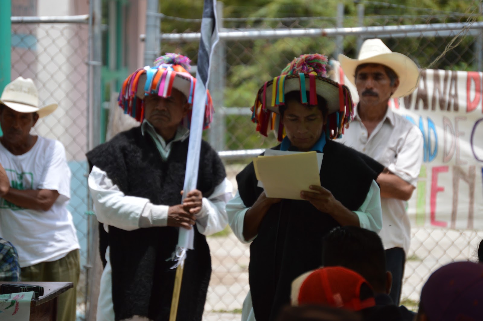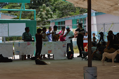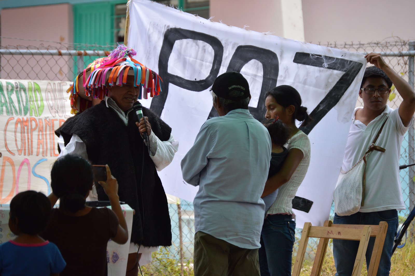 Al terminar, todos los asistentes y pobladores se juntaron en la concha de basket, para dar inicio al evento de bienvenida a la caravana de solidaridad de la Sociedad Civil, De pueblos y comunidades del Congreso Nacional Indigena, y a la Sexta.