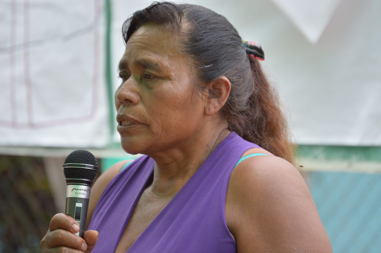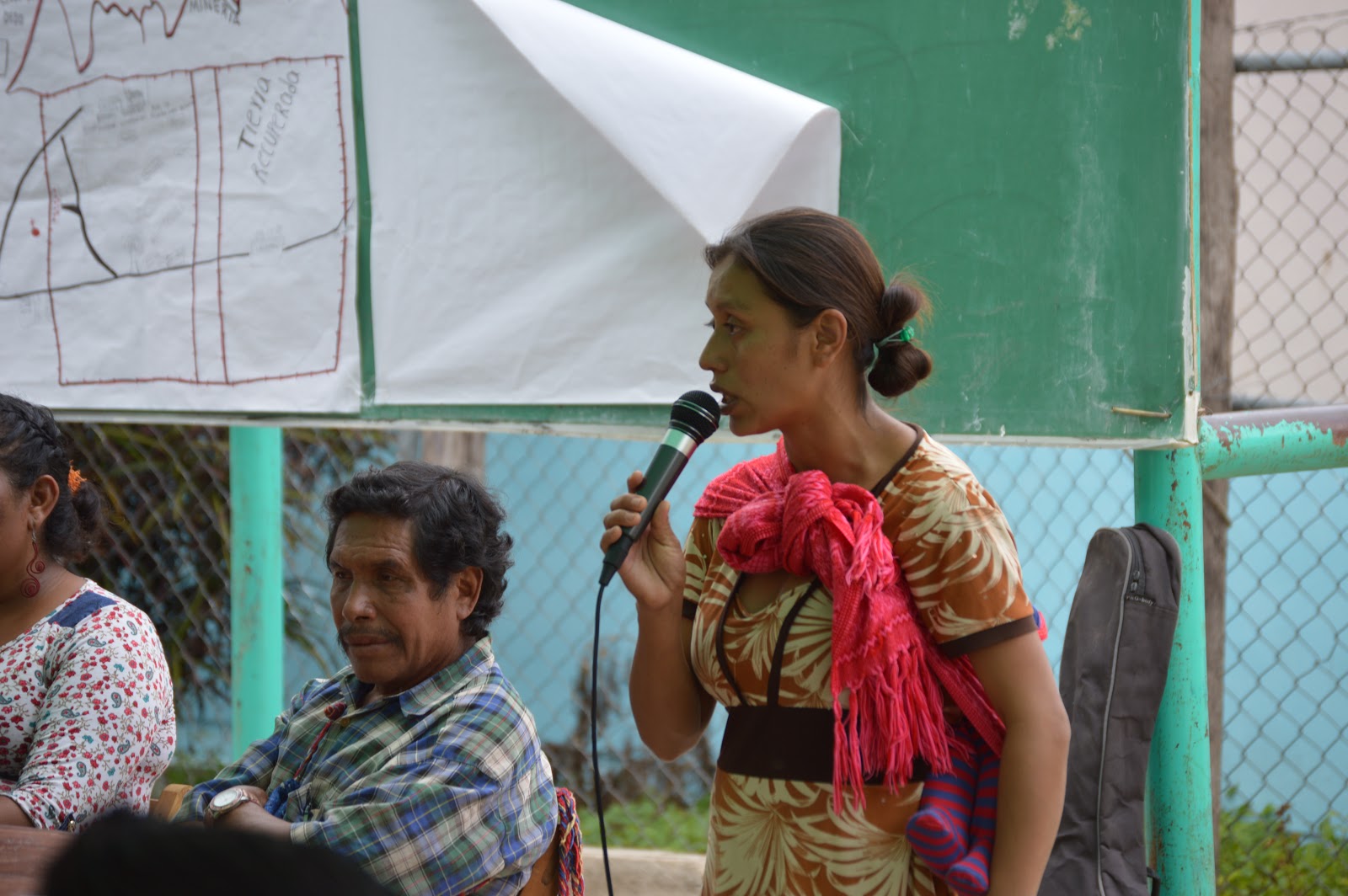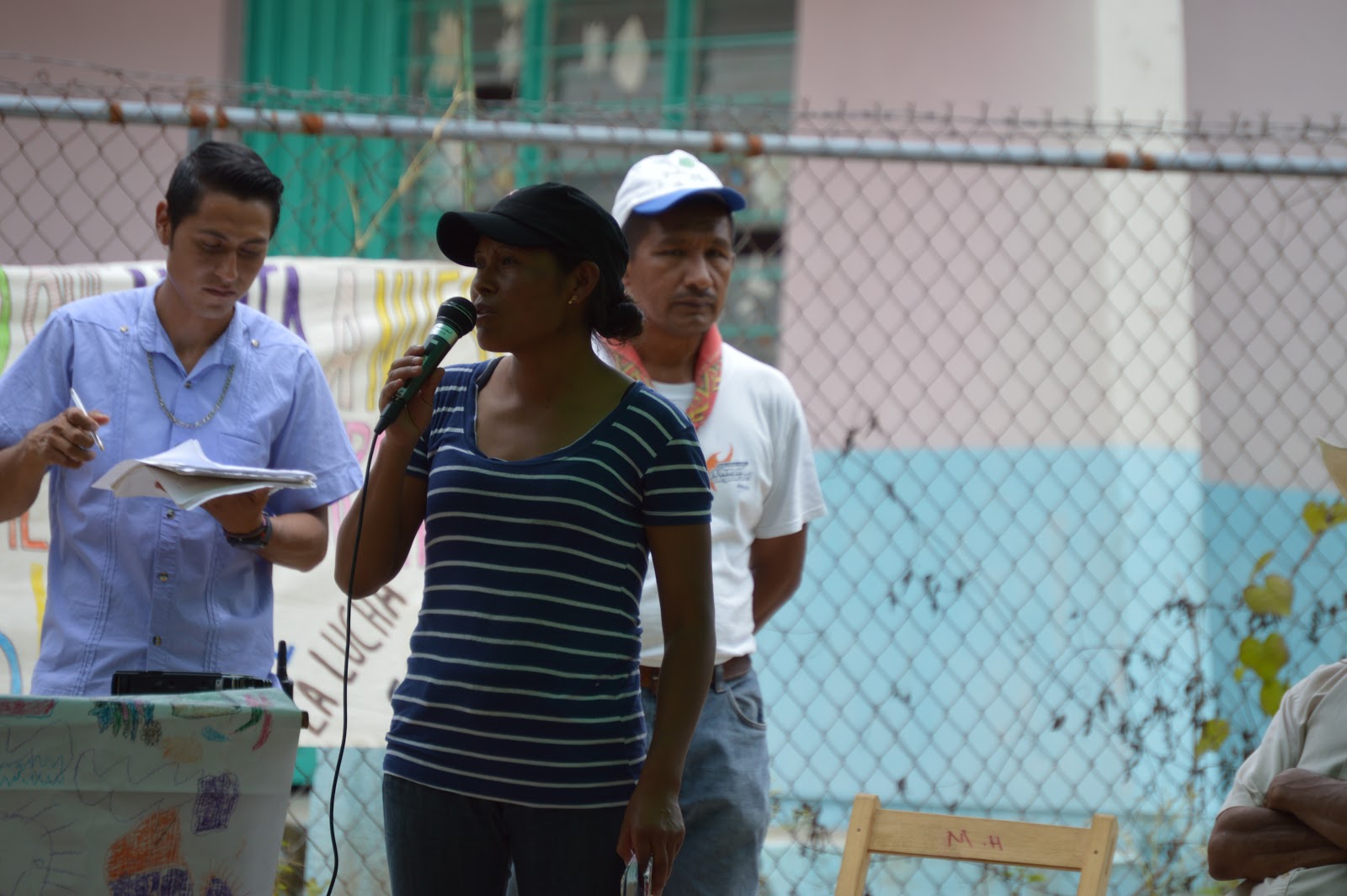 Manuela de la comunidad Nueva Libertad tomo la palabra en su idioma natal que es el tzotzil y denuncio que ahora en su comunidad el gobierno les quiere matar de sed, por la privación de acceso que hace el grupo de Nuevo Guadalupe Victoria de su manantial de agua.