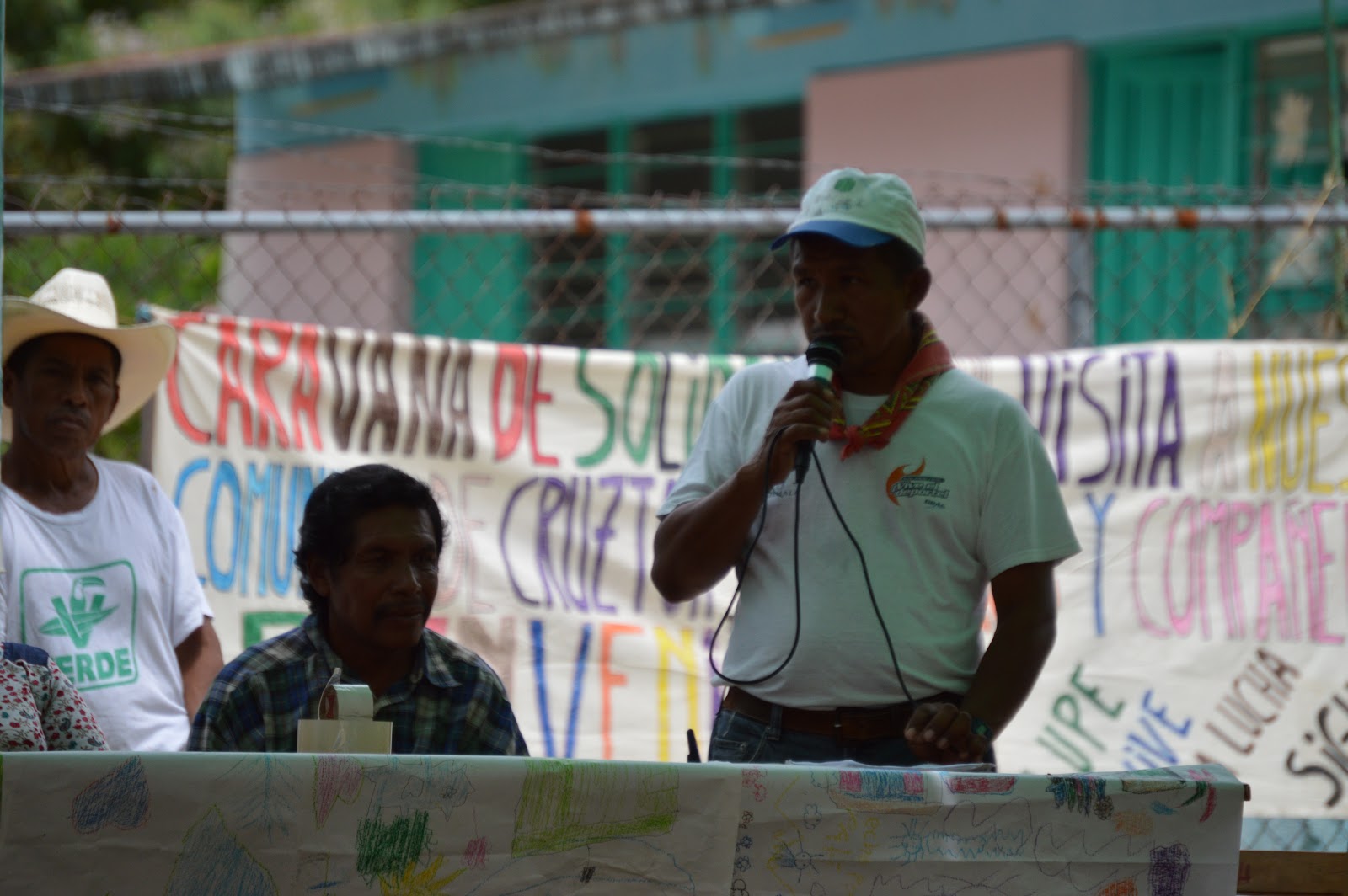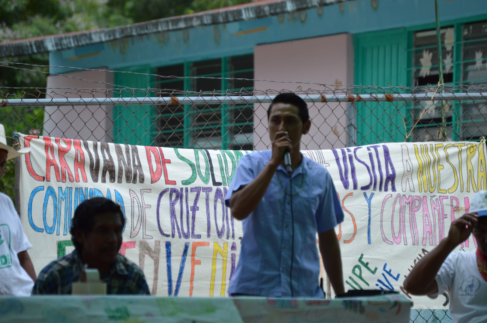 En nuestro primer foto reportaje les presentábamos la llegada de aproximadamente una centena de personas en la comunidad de Cruzton, el día 9 de julio, en caravana, pacifista, para solidarizarse tras la muerte del compañero “Lupe”, asesinado por un grupo de choque de la comunidad de Nuevo Guadalupe Victoria. Podrán ver un resumen de las diferentes ponencias de los y las pobladores de la comunidad perteneciente a Semilla Digna y al Congreso Nacional Indígena, así que de Nueva Libertad, comunidad vecina de Cruzton que sufre de privación de acceso a su manantial.