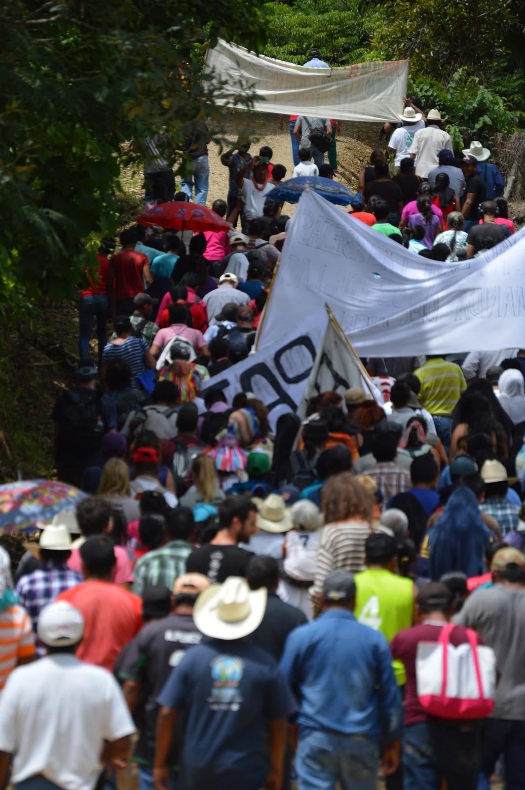 El grupo se dirigió hasta la comunidad, siguiendo gritando sus consignas. Por primera vez desde la constitución del Concejo Indígena de Gobierno, comunidades y pueblos del CNI de Chiapas, brinda su apoyo directo a otra comunidad del CNI, con una caravana de aproximadamente unos cien personas.