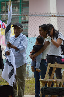 El presidente de la Mesa Directiva luego quizo entregar la bandera blanca, la bandera de la paz, al padre de Guadalupe, así que a su esposa. En un momento muy emocionante, el presidente dio unas palabras en tzotzil para explicar el símbolo de esa entrega.