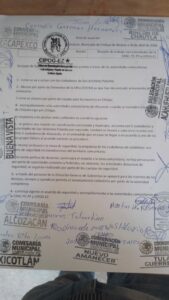 Después del 30 de abril, fecha en la que se firmó el compromiso, las comunidades de Nuevo Amanecer y Xochitempa, continuaron siendo atacadas, 26 ataques con armas de fuego en lo que va de este año 2024. Es por eso que el jueves 23 de abril, decidimos tomar el control como Sistema Comunitario que somos, por la inseguridad que se vive, para detener a nuestros agresores. En esta acción que corresponde al mal gobierno pero que al no hacer nada, nos obliga a hacerlo a nosotros, perdió la vida uno de nuestros compañeros, policía Comunitario Pedro Vázquez Matiaz, de la comunidad de Zacapexco, pues al ingresar a San Jerónimo fuimos recibidos con R-15 y cuernos de chivo.