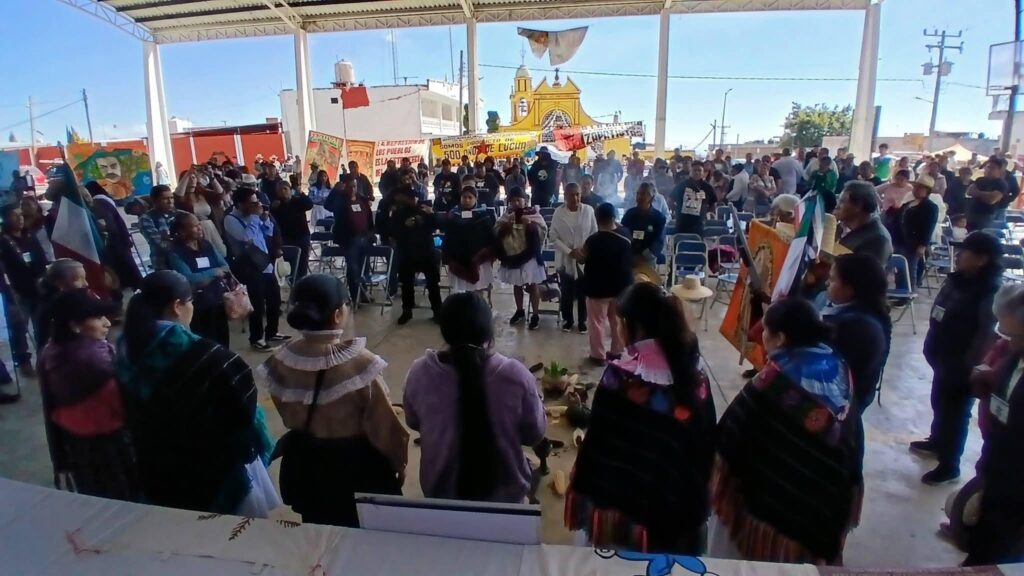 Reunidos en la plaza principal de San Mateo Ozolco, pueblo originario nahuatl de los volcanes, la comunidad de San Mateo Ozolco, acuerpados y unidos con las comunidades de San Pedro Yanhuitlalpan, San Nicolas de los Ranchos, San Lucas Atzala, San Andrés Calpan, Nealtican, Santa María Acuexcomac, Santa María Zacatepec, San Miguel Xoxtla, San Pedro Cholula, San Andrés Cholula, San Rafael Comac, San Bernardino Tlaxcalancingo, todas de la región cholulteca y de los volcanes, así como también acuerpados por la Unión de Pueblos y Fraccionamientos contra el Basurero y en Defensa del Agua, los compañeros de la comunidad otomi residente en la ciudad de México del Congreso Nacional Indígena, de la Asamblea Nacional por el Agua y la Vida, así como individuos, estudiantes, organizaciones y colectivos de la ciudad de Puebla y compañeros de la región Libres Oriental.
