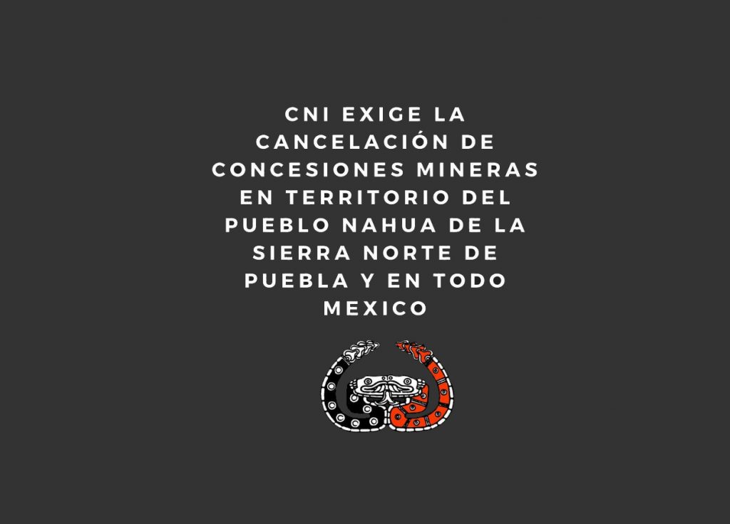 La Coordinación del Congreso Nacional Indígena/Concejo Indígena de Gobierno, así como diversas organizaciones integrantes del Congreso Nacional Indígena saludamos a nuestras hermanas y hermanos del pueblo nahua de la Sierra Norte de Puebla y a su digna lucha por anular las concesiones mineras que el mal gobierno capitalista, de antes y de hoy, entregó a los dueños del dinero apoyado en una Ley Minera que nació de la traición a los Acuerdos de San Andrés y de la violación a nuestros derechos fundamentales, sin importarle que se destruya el medio ambiente, que se devasten culturas y que se agote la esperanza de la vida; esa que los pueblos hablamos cuando emprendemos juicios o alzamos la voz de todas las formas que tenemos a nuestro alcance.