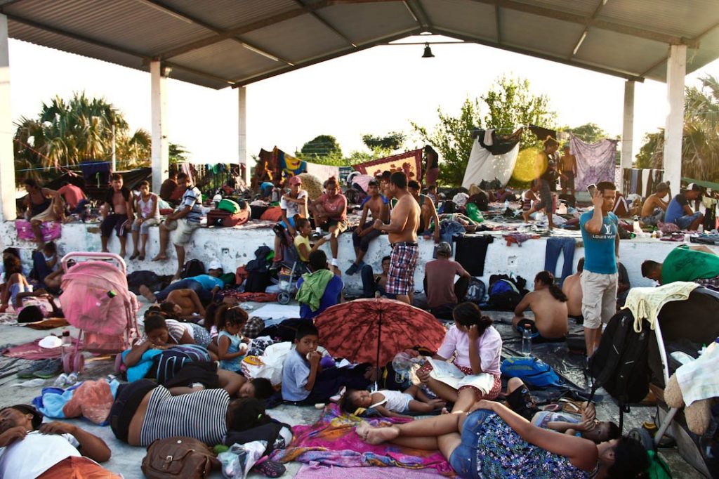 ¿Cómo se retrata un éxodo? ¿Cómo se retrata este éxodo específicamente? En el que la gente salió de su casa como si fuera por tortillas cuando en realidad iba rumbo a Estados Unidos. No hubo ni hay una planeación. No traen maletas, ni casas de campaña o sacos de dormir. No traen nada, sólo su hartazgo, determinación y entusiasmo, no forzosamente en este orden. Pero sí, entiendo porque los medios que nomás pasan, toman una foto y se van, luego lo pintan sólo como una desgracia humanitaria. Cuando por fin los alcancé en Tapanatepec, en el Istmo de Oaxaca, lo que encontré fue literalmente una alfombra de personas tiradas en el asfalto incandescente de las tres de la tarde, los ojos cerrados, las piernas dolidas y los niños llorando.
