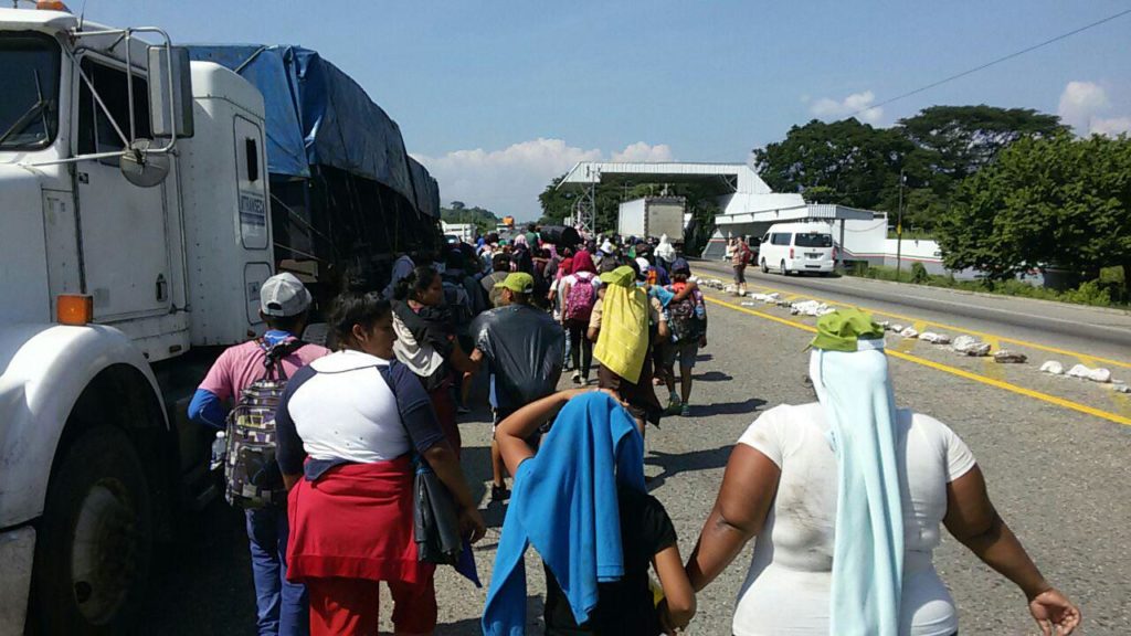 Las más de dos mil personas que conforman el tercer grupo de este Éxodo Migrante comenzaron desde el 8 de Noviembre a acelerar su paso por tierras chiapanecas. En tan solo dos días transitaron del Municipio de Mapastepec, Chiapas hasta Matías Romero, Oaxaca en donde lograron unirse en la tarde de hoy al segundo grupo que está conformado por alrededor de mil quinientas personas. El grueso de este grupo son personas de origen salvadoreño, pero también se encuentran personas guatemaltecas, hondureñas, nicaragüenses y hemos conocido casos de personas mexicanas que se han unido en el camino por el sur del país.