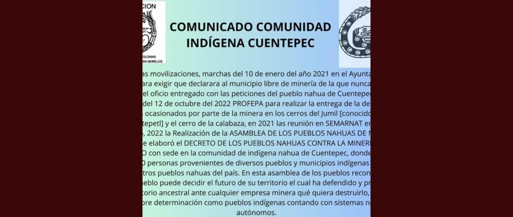 Hacemos responsable al gobernador de Puebla Sergio Salomón Céspedes y al secretario de gobernación Javier Aquino Limón de cualquier atentado en contra de los pueblos que defendemos la vida y el territorio.