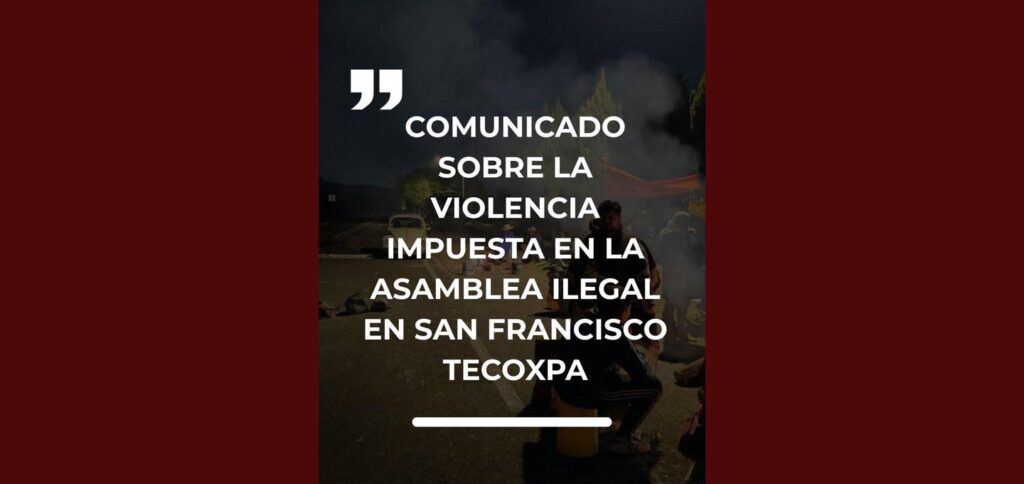 Comunicado sobre la violencia impuesta en la asamblea ilegal en San Francisco Tecoxpa