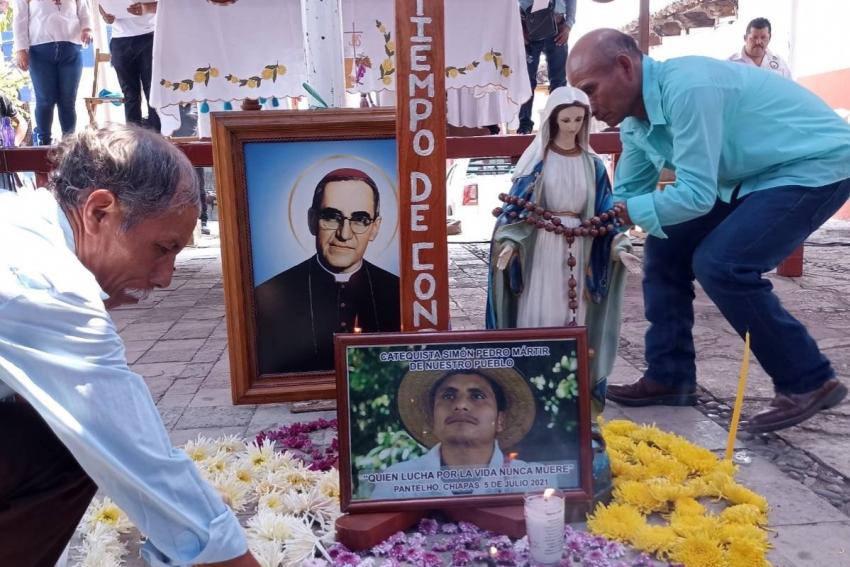 El Pueblo Creyente de la Parroquia de San Antonio de Padua, Simojovel, Chiapas; y en el nombre de Nuestro Señor Jesucristo les deseamos paz y bendiciones a todos los hombres y mujeres de buena voluntad en este día que peregrinamos y denunciamos las situaciones sociales injustas que lastiman y dañan a nuestros pueblos y comunidades. Les saludamos en este día, cercano también a cumplirse 3 años del asesinato de nuestro hermano catequista Simón Pedro. Cuya Sangre inocente sigue clamando justicia al cielo. Les saludamos, a los pocos días de la terrible masacre de nuestros hermanos catequistas y candidato al diaconado permanente del Ejido Morelia, Municipio de Chicomuselo, con quienes hoy nos solidarizamos y enviamos una palabra de aliento: hermanos y hermanas de Chicomuselo permanezcan fieles al único camino, el camino de la Paz y de la Vida, el camino, cuya sangre Cristo Jesús nos ha dejado señalado.
