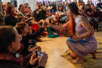 La cultura para nosotras significa resistencia y diversidad, no es ni un producto, ni algo estético. El arte debe estar en diálogo, en fluidez. Debemos devolver los valores que representan el arte y la cultura, devolver la esencia de las mujeres. La estética es la sensibilidad que acompaña a la ética. La diversidad en si, hace más profundo el camino de la resistencia. Nuestras lenguas, bailes, maneras de vivir, ancestralidades, pasos, maneras de mirar y de amar son nuestras raíces. Organizar la cultura y el arte para que el poder hegemónico no la pueda manipular. Debemos defender nuestras comunidades y recuperar esas memorias. No somos cenizas, somos el fuego que danza con los bailes de libertad en las montañas de Kurdistán, en el Wallmapu, en los quilombolas en Brasil, en la Amazonía Colombiana, Ecuatoriana, en los montes de Peru, en todos los territorios del mundo, del universo.