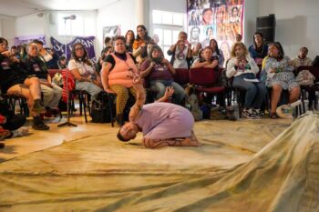 Las arengas y los cánticos atravesaron el panel como corrientes vivas. Comenzaron como denuncias y se transformaron en consignas colectivas. Los gritos dejaron de ser individuales para convertirse en un solo cuerpo sonoro. Allí se hizo palpable la potencia de las redes internacionales que se escuchan y se reconocen, tanto en la presencialidad del encuentro como a través de las transmisiones que expandían la palabra hacia otros territorios.