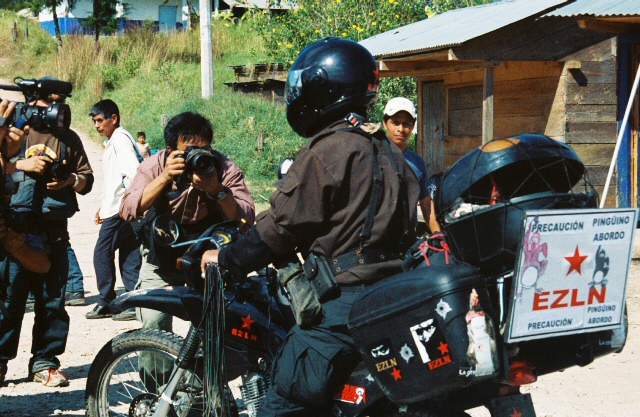 El profesor Adolfo Gilly, que estuvo en Berkeley hace unas semanas, y que escribió uno de los libros más importantes sobre la Revolución Mexicana, dice que el zapatismo, al igual que la Revolución, no representa una ruptura con el pasado; que al contrario, ambos movimientos son una continuidad de las rebeliones agrarias desde la época de la colonia. Esas rebeliones son una manifestación de las fuerzas subterráneas de México que no pueden ser calladas. Por más asfalto que le echen encima a las ruinas del pasado, la esencia indígena del pueblo mexicano seguirá rebelándose y haciendo temblar al México mestizo hasta que se le dé su debido lugar. Por eso el Pingüino mira hacia atrás, hacia las comunidades autónomas en rebeldía que se pierden en la distancia tras la nube de polvo que deja la moto del Sup. Porque sin ellas, toda esta onda de la Otra Campaña no tendría sentido. El significado más profundo de la Sexta Declaración y de la Otra Campaña sólo puede ser entendido si miramos hacia lo que han hecho todos estos años los zapatistas en sus comunidades, la construcción de una realidad alternativa, de una otra realidad posible en este mundo en el que nos dicen y nos repiten que el capitalismo es la única vía, que se acabaron las luchas, que las utopías son tonterías y que ni modo, a consumir porque no hay otra (si es que tenemos con qué, y si no, pos ni modos).