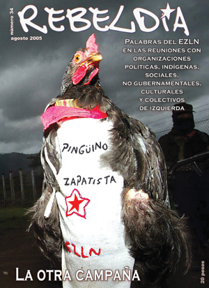Por cierto, para quien no conoce al Pingüino, tengo que aclararles que es uno de los más recientes y ya más importantes miembros del Ejército Zapatista de Liberación Nacional. No siempre fue pingüino, antes era pollo… o gallina, qué se yo. Como todos sabemos, la condición de las gallinas es pasarse la vida agachadas picando el suelo hasta que alguien llega un día, les tuerce el pescuezo y se las come. Cuando el Pingüino era gallina hacía lo mismo, andaba siempre agachado y ocupado con su eterno picoteo. Pero como creció en una comunidad zapatista, de vez en cuando se colaba al salón de clases, y de tanto oír al promotor de educación se puso a pensar, y de tanto pensar empezó a decirse que no estaba bien la cosa, que cómo que le iban a torcer el pescuezo así nomás cuando se les diera la gana. Así que un día, en plena alerta roja, cuando los zapatistas se preparaban a huir y se estaban comiendo todos los pollos para no dejárselos a los federales, el Pingüino dijo “ ¡ Ya Basta!”, y que se levanta y se pone andar como gente, con la vista en alto, y les dice a los compas: “ ¡ Epa epa, calmaditos, que yo no soy cualquier gallina, yo soy Pingüino y me respetan!” Tan impresionados se pusieron los compas que lo invitaron unírseles como asesor de la comandancia general, y ahí anda ahora con su pechera blanca con las insignias del EZLN.
